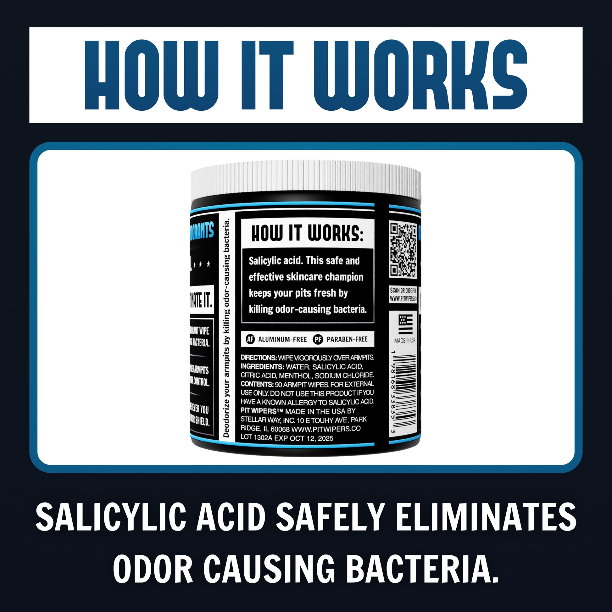 - Advanced Odor Neutralizing Technology: Infused with salicylic acid, Pit Wipers target and neutralize odor-causing bacteria, ensuring your underarms stay fresh longer.